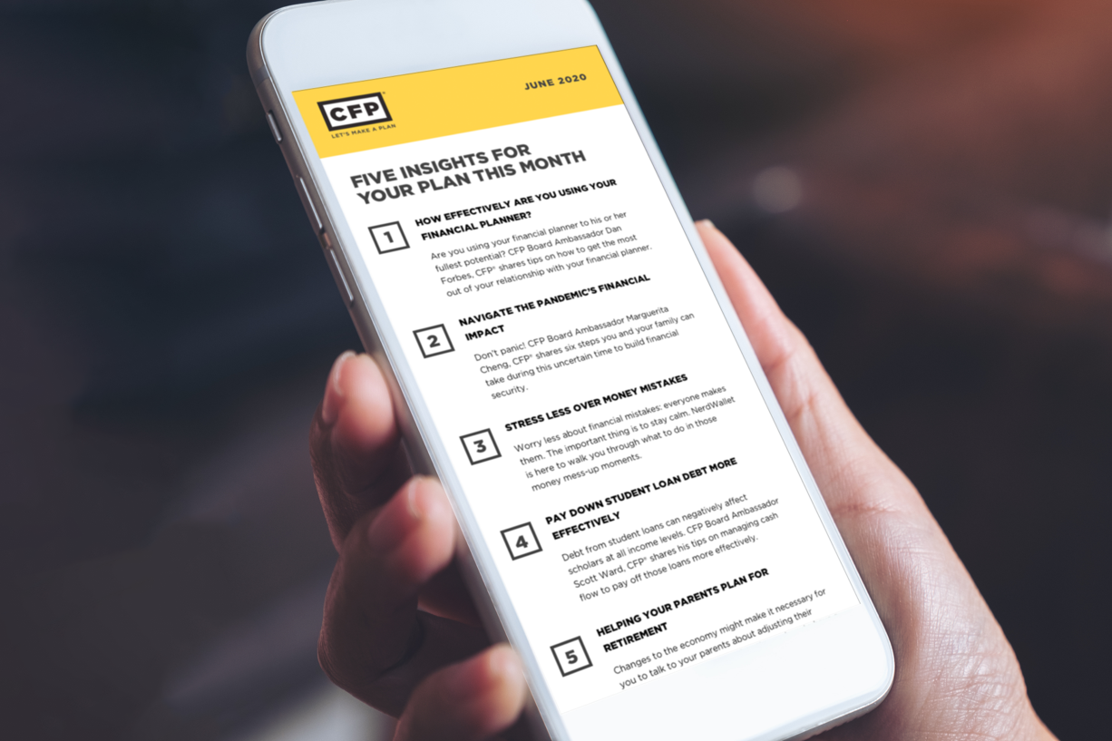 Stay up to date with our monthly newsletter, The Financial Planning 5. Find the latest insights from CFP® professionals to help you build your knowledge and inform your financial planning strategies.